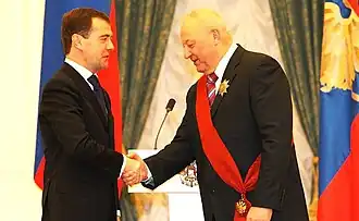 - ↑ Распоряжение Президента Российской Федерации от 12 декабря 2008 года № 777-рп «О награждении Почётной грамотой Президента Российской Федерации». Дата обращения: 16 декабря 2008. Архивировано из оригинала 7 января 2012 года.