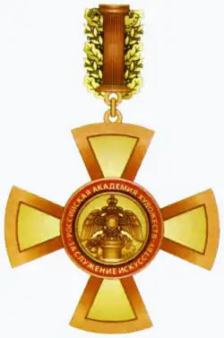 • Орден «За служение искусству» I степени — высшая награда РАХ. Вручается выдающимся деятелям культуры и искусства, чей вклад в сохранение духовных и эстетических традиций России и мира получил высокое общественное признание.
