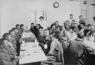 Чаепитие в лазарете Лиги. В центре стоит участница Лиги Ольга Яновская