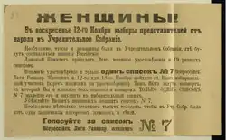 Бюллетень Лиги равноправия на выборах в Учредительное собраниеПредвыборная листовка