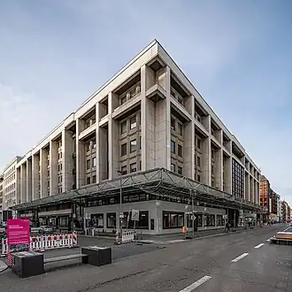 Здание возводилось с 1981 по 1984 год по проекту архитектора Карла-Эрнста Свора на месте более раннего коммерческого здания, разрушенного во время Второй мировой войны. Реализацией этого проекта занималось недавно сформированное Управление строительства специальных проектов в Берлине нем. Aufbauleitung Sondervorhaben der Hauptstadt Berlin, в составе коллектива Строительной академии ГДР под руководством архитектора Эрхардта Гиске. При строительстве использовались высококачественные материалы, такие как гранит из Лажицы для фасада и известняк из Врацы для верхних этажей. В здании семь этажей, его площадь составляет около 29000 м². Над входной зоной расположен красочный фриз из магдебургского стекла.