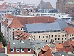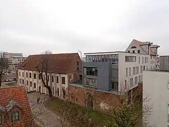 Жилье поначалу представлялось трудным. Размещенные в бывшей специальной школе пространства на Бузебарте и на улице Вязов, было очень ограничено для растущего числа студентов. В апреле 2001 года новые помещения можно было приобрести в бывшем Екатерининском монастыре, реконструированном и перестроенном Йонсом Рейманном, в восточном старом городе Ростока.