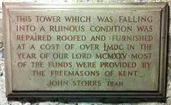 - ↑ Palmer, 1897, p. 66 and Hasted. A scar is still visible on the triforium wall where the pilasters used to be.