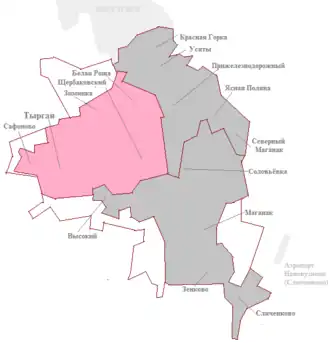 Район включает в себя планировочные районы (бывшие населённые пункты, вошедшие в городскую черту): Тырган, Зиминка, Щербаковский, Березовая Роща, Сафоново[18].