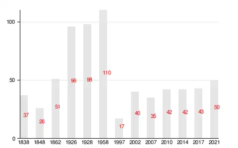 | 1838 | 1848 | 1862[27] | 1928 | 1958 | 1997 | 2002 | 2007[28] | 2010[29] |