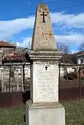 Надгробие 6 русских солдат, погибших при освобождении села 16 декабря 1877 года. | Тука почиват 6 души Руски Войници † на 1877 г. въ Руско-Турската Война с. Елешница. | Елешница. Расположен в южной части посёлка