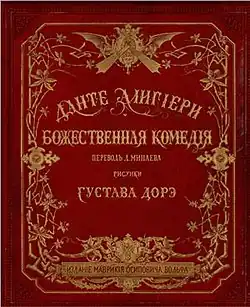 …перевод А. Фёдорова (1892—1894) — не более чем литературный курьёз. Перевод Д. Минаева (1874—1876) — далёк от подлинника и расплывчат: самое число стихов в отдельных песнях значительно большее, чем в оригинале. Терцинное строение в нём не соблюдено, а без него нарушается архитектоника поэмы. То же следует сказать и о позднейшем переводе О. Чюминой (1900—1902). Ближе передаёт и форму и содержание подлинника перевод Н. Голованова (1896—1902), но и он во многих отношениях несовершенен. Несравненно более ценен перевод Дмитрия Мина. «Ад» (V песнь которого была им напечатана ещё в 1844 году) вышел в свет в 1855 году. Полное издание «Комедии» явилось уже посмертным (1902—1904). При всех своих достоинствах перевод Мина не всегда в должной степени точен, а главное — он написан стихами, по которым трудно судить о поэтической мощи подлинника[46][8].