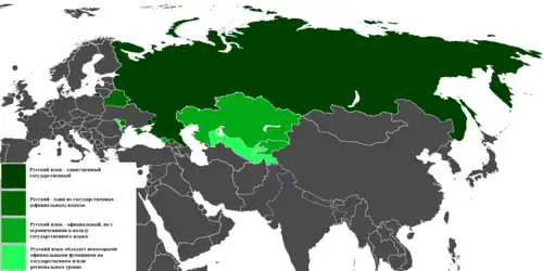 Страны, в которых русский язык — один из официальных(включая непризнанные и частично признанные государстваПриднестровье, Абхазию и Южную Осетию)