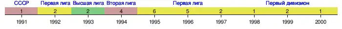 | Первая лига 1992 (Итог) | 2 из 13 | 25 | 17 | 6 | 2 | 57 | 7 | +50 | — | |||||