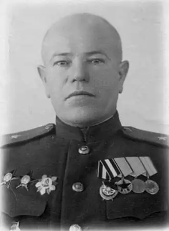 - ↑ Коллектив авторов. Великая Отечественная: Комкоры. Военный биографический словарь / Под общей редакцией М. Г. Вожакина. — М.; Жуковский: Кучково поле, 2006. — Т. 1. — С. 489. — ISBN 5-901679-08-3.