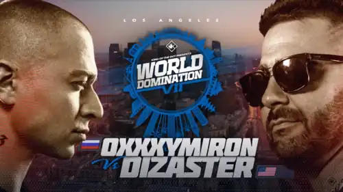 Рэп-баттл между Оксимироном и Дизастером прошёл 16 октября 2017 года в клубе Los Globos на канадской баттл-площадке King of the Dot в Лос-Анджелесе в рамках международного турнира World Domination 7[1].