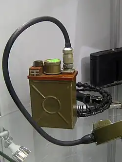 - микротелефонная гарнитура с микрофоном, прижимающимся к щеке оператора (так называемый щекофон, позволяет работать и в противогазе), и манипулятором с органами управления;