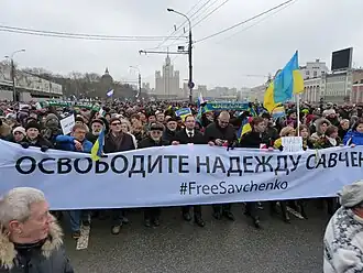 7 марта 2016 года члены Русского ПЕН-центра, а также присоединившиеся к ним учёные, писатели, переводчики и журналисты распространили заявление с требованием признать несостоятельными итоги следствия и суд над Надеждой Савченко, в результате которого прокуратура РФ потребовала для неё «жестокого, несправедливого и неправосудного наказания»[111]. Также подписанты потребовали прекратить преследование Надежды Савченко: по их мнению, она должна быть признана военнопленной и включена в процесс обмена военнопленными в соответствии с Минскими соглашениями, подписанными Россией в феврале 2015 года[112].