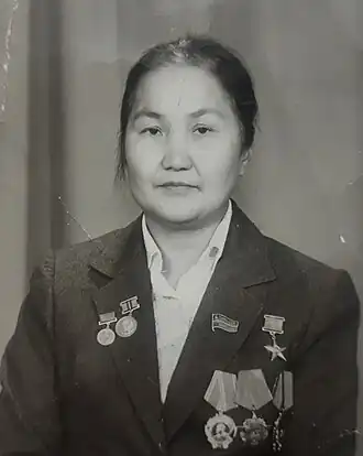 - Канышбек Сагинбаева. Сайт «Герои страны».