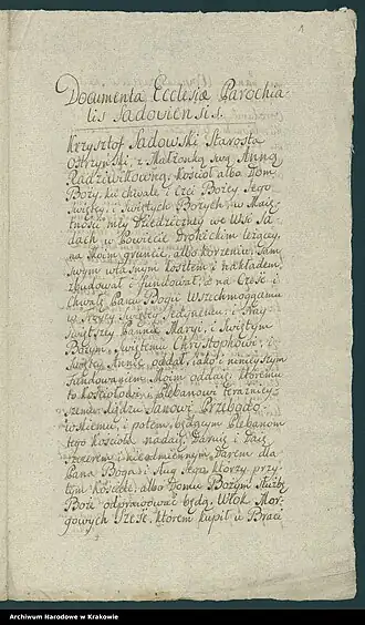 - его милость вельможный пан (wielmożny imsći pan) Рейнхольд Садовский (3 февраля 1710 года)[7], его милость яновельможный пан (iasniewielmożny imći pan)(6 февраля 1716 года)[8] ;