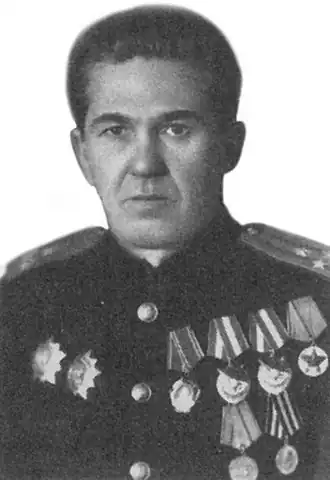 - 1 2 3 4 5 6 7 Коллектив авторов. Великая Отечественная: Комдивы. Военный биографический словарь. Командиры стрелковых, горнострелковых дивизий, крымских, полярных, петрозаводских дивизий, дивизий ребольского направления, истребительных дивизий. (Пивоваров – Яцун). — М.: Кучково поле, 2014. — Т. 5. — С. 285—286. — 1500 экз. — ISBN 978-5-9950-0457-8.