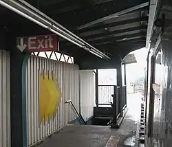 Станция имеет два выхода. Основной выход расположен с южного конца станции. Он представлен эстакадным мезонином, расположенным под платформами, в который с каждой платформы спускается по одной лестнице. В самом мезонине находятся турникеты. Здесь же можно в случае необходимости перейти с одной платформы на другую. Из мезонина в город ведут две лестницы — к перекрестку Кресент и Химлок-стрит.