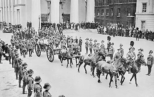 Салливану были отданы все воинские почести: военные похороны прошли 13 апреля в Лондоне. Гроб с телом Салливана, на груди которого лежал крест Виктории, на голове находилась шляпа с плюмажем, а на ногах — сапоги со шпорами, был выставлен для государственного прощания в казармах Веллингтона. Отпевание прошло в переполненной Гвардейской часовне вслед за исполнением национального гимна и «марша мёртвых» Генделя на органе. После салютного залпа австралийского коронационного контингента задрапированный флагом гроб Салливана на оружейном лафете, запряжённом шестёркой каштановых лошадей, был провезён через многотысячную толпу и 9 километров (6 миль) улиц по всему городу мимо Букингемского дворца в Найтсбриджские казармы в сопровождении десяти кавалеров креста Виктории, включая командира авиакрыла Макнамару и вице-адмирала Кэмпбелла, за которыми следовали игравшие «траурный марш» гренадерские гвардейцы, представители нескольких коронационных контингентов, а также четыре машины с венками[1][2][7][10][10][30][31][32].