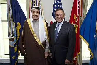 Салма́н ибн Абду́л-Ази́з ибн Абдуррахма́н А́ль Сау́д (араб. سلمان بن عبد العزيز بن عبد الرحمن آل سعود; род. 31 декабря 1935[1][2][…], Эр-Рияд, Саудовская Аравия) — король Саудовской Аравии и верховный главнокомандующий Вооружёнными силами Саудовской Аравии с 23 января 2015 года. Премьер-министр Саудовской Аравии с 23 января 2015 по 27 сентября 2022 года, наследный принц Саудовской Аравии с 18 июня 2012 года по 23 января 2015 года. Стал королём после смерти своего единокровного брата короля Абдаллы. Министр обороны Саудовской Аравии (2011—2015). Губернатор провинции Эр-Рияда (1963—2011), ранее также был в этой должности (1955—1960). Заместитель губернатора провинции Эр-Рияд (1954—1955).