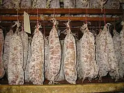 На процесс отвердевания влияют климат окружающей среды, размер и стиль оболочки. После ферментации продукт должен быть высушен. Это делает относительно водонепроницаемую оболочку почти герметичной. Белёсое покрытие типа плесени или муки помогает предотвратить фотоокисление мяса и появление прогорклости в жире.