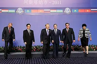 | каз. Астанадағы ШЫҰ саммиті (2011) кит. упр. 2011年上海合作组织阿斯塔纳峰会 англ. SCO Summit in Astana (2011) | |