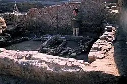 - Крепость. Вероятность наличия на городище крепости, построенной из обожжённого кирпича, поднимает статус города и связывает его с царской властью, поскольку кирпичное строительство в каганате являлось царской монополией[20].