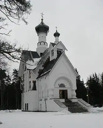 31 июля (12 августа) 1892 года была заложена деревянная, на гранитном цоколе, православная церковь, строительство которой (архитектор Е. Л. Лебурде) продолжалось 10 месяцев. Освящена 21 мая (2 июня) 1893 года во имя Святого Благоверного князя Александра Невского[2][21].