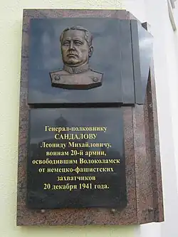 - Мемориальная доска Л. М. Сандалову на доме № 10 на Октябрьской площади в Волоколамске.