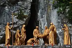 - Подсвечники — стоят на набережной реки неподалёку от грота. Ежегодно в них сгорает 700 тонн свечей, которые ставят паломники[9].