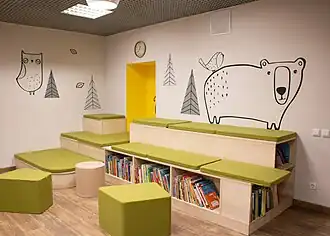 Детский отдел – зал с уникальными тактильными книгами для незрячих детей, изданиями для маленьких читателей, не владеющих средствами вербальной коммуникации, для детей, имеющих расстройства аутистического спектра. В зале представлено специальное оборудование – игровой компьютер с более 100 игровыми развивающими программами для детей с различными проблемами здоровья; устройства для самостоятельных занятий ребенка, разработанные по системе Монтессори.
