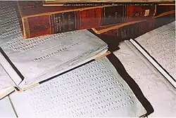 Состав фонда включает также старейшие издания первых типографий, печатающих рельефно-точечным шрифтом (типография Ю.Штауфа, типография Института слепых в Санкт-Петербурге), первые книги для слепых, созданные вручную, первые учебные пособия для обучения слепых в школах.