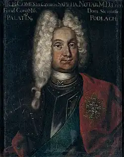 Михаил Юзеф Сапега (1670 — 6 марта 1738, Шалон-ан-Шампань) — государственный и военный деятель Речи Посполитой, чашник великий литовский (1687—1692), стражник великий литовский (1692—1698), писарь польный литовский (1698—1703, 1708—1730), воевода подляшский (1728—1738), генерал-майор литовских войск (1710), генерал-лейтенант кавалерии (1714), генерал-лейтенант саксонской армии (1733), староста мельницкий (с 1725 года).