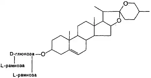 - ↑ Lazur'evskii G. V., Kintya P. K., Pukhal'skaya E. Ch., Sofina Z. P. Structure and activity of steroidal glycosides (англ.) // Pharmaceutical Chemistry Journal. — 1978. — Т. 11, № 6. — С. 749—757. — ISSN 0091-150X. — doi:10.1007/BF00779287. (недоступная ссылка), p.756.