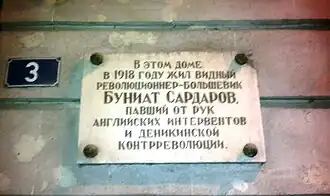 А. И. Микоян также вспоминал: «Так же трагически погиб Буниат Сардаров, член партии с 1906 года. Лодка, на которой он с группой товарищей возвращался из Астрахани в Баку, была захвачена англичанами, и весь её экипаж расстрелян»[9].