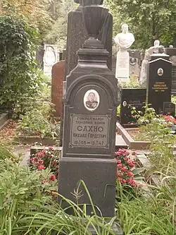 - На могиле установлен надгробный памятник на Новодевичьем кладбище Москвы.