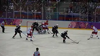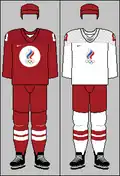 Сборная России по хоккею с шайбой — национальная команда, представляющая Россию на международных турнирах по хоккею с шайбой. Управляется Федерацией хоккея России. Впервые была собрана в 1992 году, получив право выступать в группе сильнейших на чемпионате мира как правопреемница сборной СССР. С учётом результатов сборной СССР, сборная России одержала 27 побед на чемпионатах мира (22 победы сборной СССР и 5 побед сборной России), а также завоевала 9 золотых медалей на Олимпийских играх (7 побед сборной СССР, 1 победа Объединённой команды, 1 победа Олимпийских спортсменов из России). В рейтинге ИИХФ на май 2023 года находится на третьем месте[6]. Является одной из сильнейших хоккейных сборных мира и наряду со сборными Канады, Швеции, Финляндии, Чехии и США входит в «большую хоккейную шестёрку».