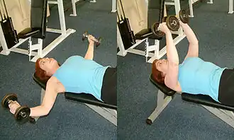 Во время опускания руки в локтевых суставах либо остаются зафиксированы в немного согнутом положении, либо немного сгибаются, что необходимо для уменьшения нагрузки локтевых связок и суставов. Существенное сгибание рук в локтевых суставах видоизменяет его в жим гантелей лёжа.