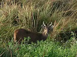 - ↑ Gupta, S.K.; Kumar, A.; Angom, S.; Singh, B.; Ghazi, M.G.U.; Tuboi, C.; Hussain, S.A. (2018). Genetic analysis of endangered hog deer (Axis porcinus) reveals two distinct lineages from the Indian subcontinent. Scientific Reports. 8 (1): 1–12. doi:10.1038/s41598-018-34482-9. PMC 6218551. PMID 30397218.