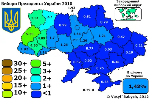 | 2010 (январь, выборы Президента — Олег Тягныбок) | 2010 (октябрь, выборы в областные советы) |