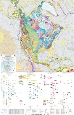 Древний материк Лаврентия сложил ядро Северной Америки в период от 1,5 до 1 млрд лет назад в протерозойском эоне[9]. Между поздним палеозоем и ранним мезозоем Северная Америка, как и другие современные континенты, отделилась от суперконтинента Пангеи.