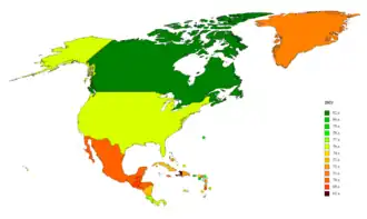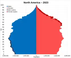 Население Северной Америки составляет ~579 млн человек, что составляет 7 % от населения мира. В пределах материка часто выделяют Североамериканский регион, объединяющий США, Канаду, Гренландию, Сен-Пьер и Микелон и Бермуды. Северная Америка, как и Австралия, является материком, где нет стран без выхода к морю.
