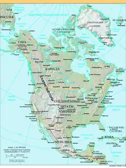Протяжённость Северной Америки с севера на юг и с запада на восток превышает 8000 км. Этот материк также имеет большую протяжённость береговой линии, достигающей 60 тыс. км длины[8].