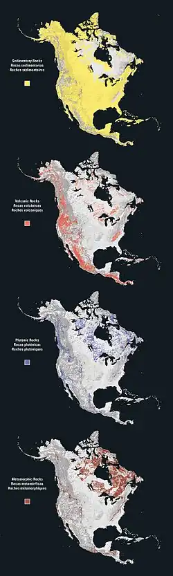 Осадочные, вулканические, магматические и метаморфические породы Северной Америки