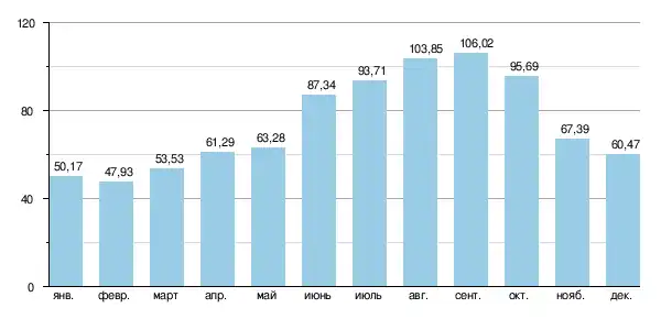 | Расход воды | 73,67 м³/с (56 км от устья) |