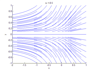 - При векторное поле имеет две особые точки: . Одна из них () является устойчивой, другая () — неустойчивой.