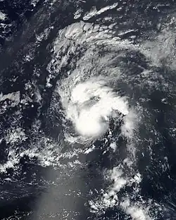 | Интенсивность | 50 mph (85 км/ч) (1-мин), 1005 мбар (гПа) | ||