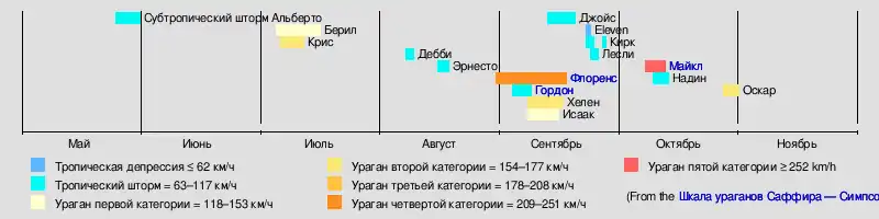 - ↑ Hurricane FLORENCE. nhc.noaa.gov. Дата обращения: 13 сентября 2018. Архивировано 14 сентября 2018 года.