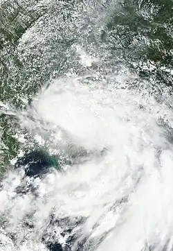 | Интенсивность | 55 км/ч (35 mph) (10-мин), 1000 гПа (мбар) | ||