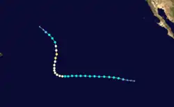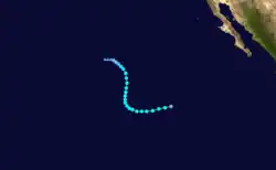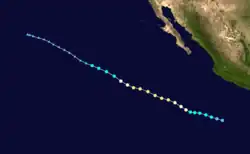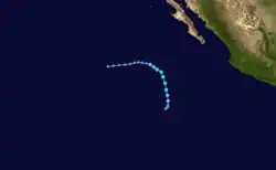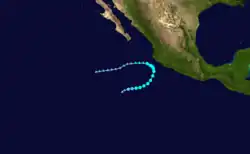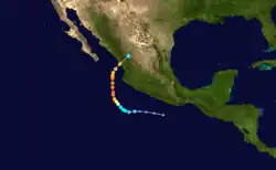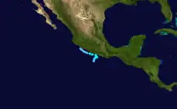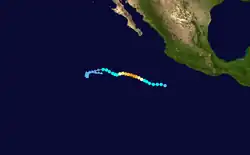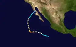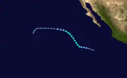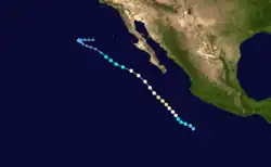 4 июня Национальный центр по слежению за ураганами начал отслеживать область низкого давления, расположенную в Тихом океане вблизи Мексики[18]. На следующий день в регионе сформировалось крупная область атмосферных возмущений, которая медленно смещалась в западном направлении[19]. Медленно усиливаясь, эволюционирую и создавая организованную структуру она смещалась в северо-западном направлении, пока не сформировала облачную структуру, характерную для тропической депрессии и не получила соответствующий статус в ночь с 9 на 10 июня[20]. В 6:00 (МСК) 10 июня циклону был присвоен статус тропического шторма, а в ночь на 11 июня статус был вновь повышен, теперь до урагана первой категории[21].Ураган усилился до третьей категории во второй половине дня 11 июня[22], а ранним утром 12 июня — до урагана 4 категории[23] и вызвал мощные ливни в городах Сапопан и Гвадалахара. В связи с попаданием в зону с относительно холодными поверхностными водами 13 июня ураган начал быстро терять силу[23] и к моменту выхода на сушу ослаб до тропического шторма[24]. Циклон выходил на сушу дважды: в три часа утра (МСК) 15 июня как тропический шторм он задел полуостров Калифорния[25], а через шесть часов, ослабнув до остаточного минимума, окончательно вышел на сушу на континентальное побережье Мексики[26]. На следующий день циклон рассеялся.