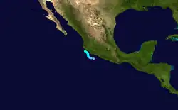 29 июля NHC сообщил о высокой вероятности формирования области низкого давления в Тихом океане недалеко от побережья Мексики[88], которая действительно начала формироваться в нескольких сотнях миль к югу от залива Теуантепек 2 августа[89]. Циклон медленно перемещался к северо-северо западу и упорядочивал свою структуру, пока в полночь 6 августа не было объявлено, что он усилился до тропической депрессии[90]. Атмосферные условия и температура океана были благоприятны, благодаря чему циклон стремительно усиливался — через 6 часов он усилился до тропического шторма[91], а к полночи 7 августа — до урагана первой категории[92]. В тот же день он поглотил тропический шторм Илеана, который неосторожно приблизился к нему и был полностью уничтожен[86], и к 18 часам усилился до урагана второй категории[93]. Дальнейшему усилению урагана помешала понизившаяся температур поверхностных вод и циклон начал быстро ослабевать — уже через сутки он ослаб до первой категории, к 18 часам 9 августа — до тропического шторма, а ещё через сутки — превратился в остаточный минимум и прекратил свое существование[94]. Циклон не выходил на сушу, но вызвал высокие волны на океанском побережье Южной Калифорнии[95]. О жертвах и разрушениях не сообщается.